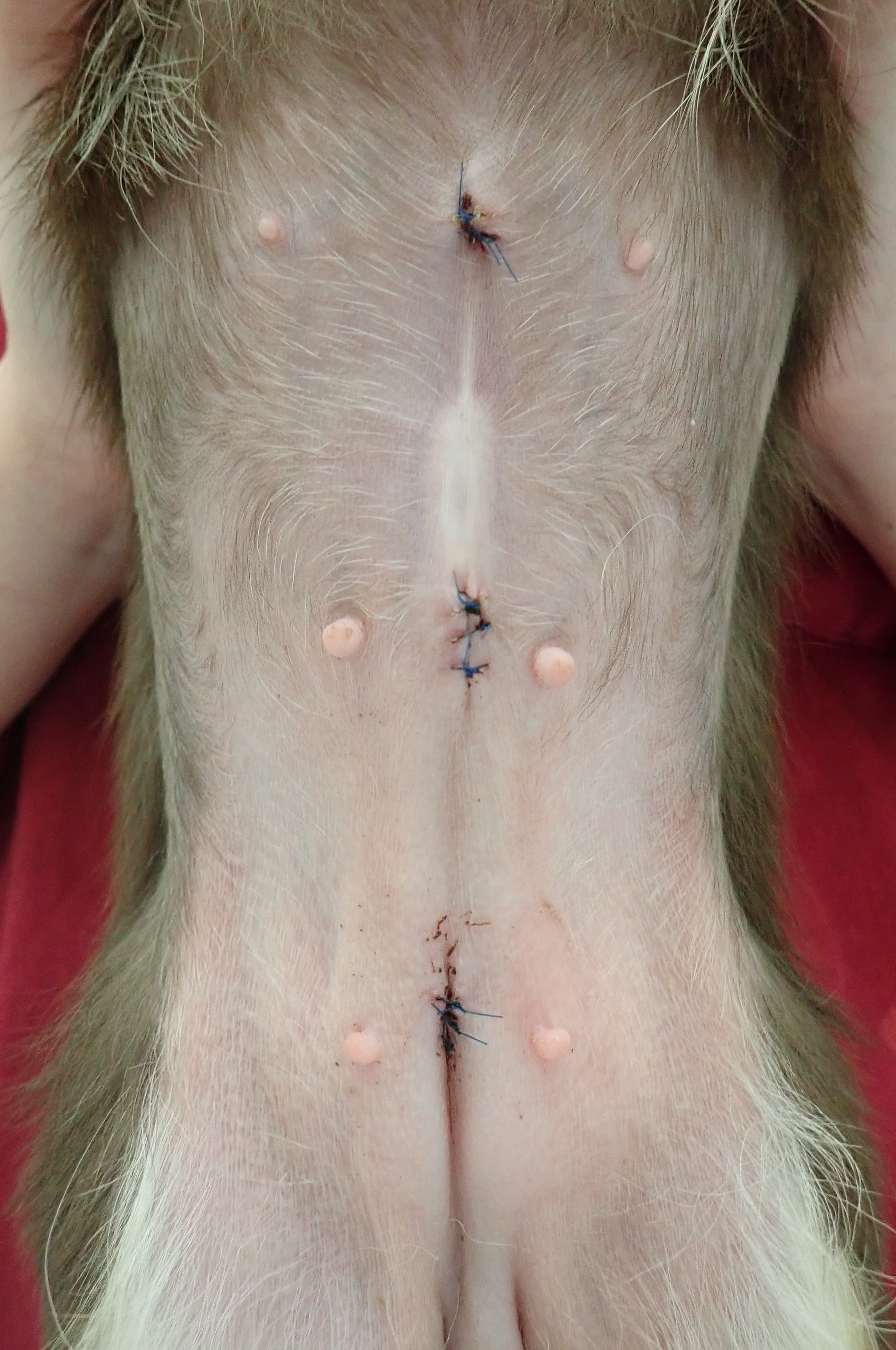 3mm,3mm,5mmのポートを使い、小さな傷で避妊手術と肝臓の生検を行いました。