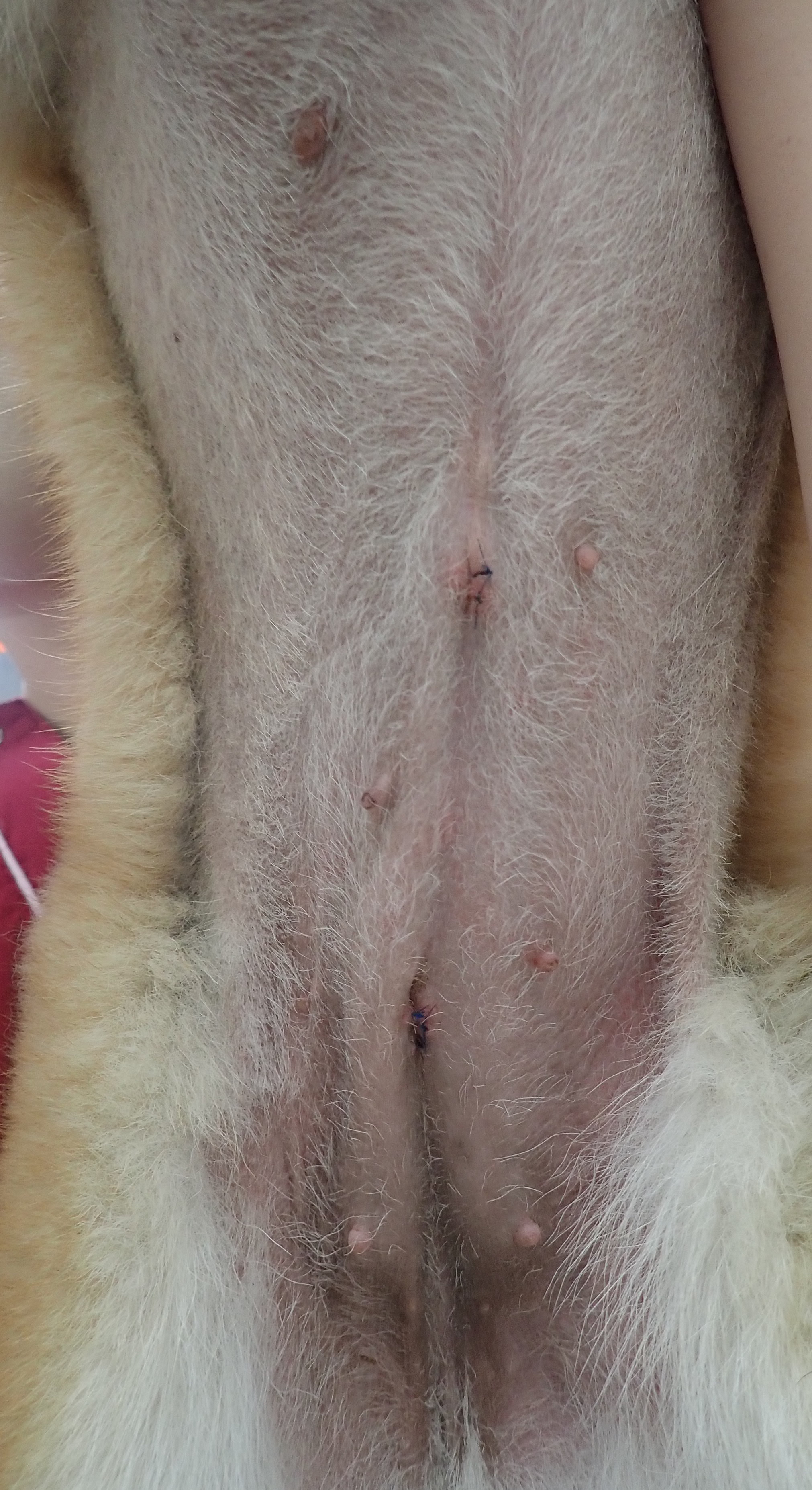 3mm,3mm,5mmのポートを使用し、小さな傷で避妊手術を行いました。