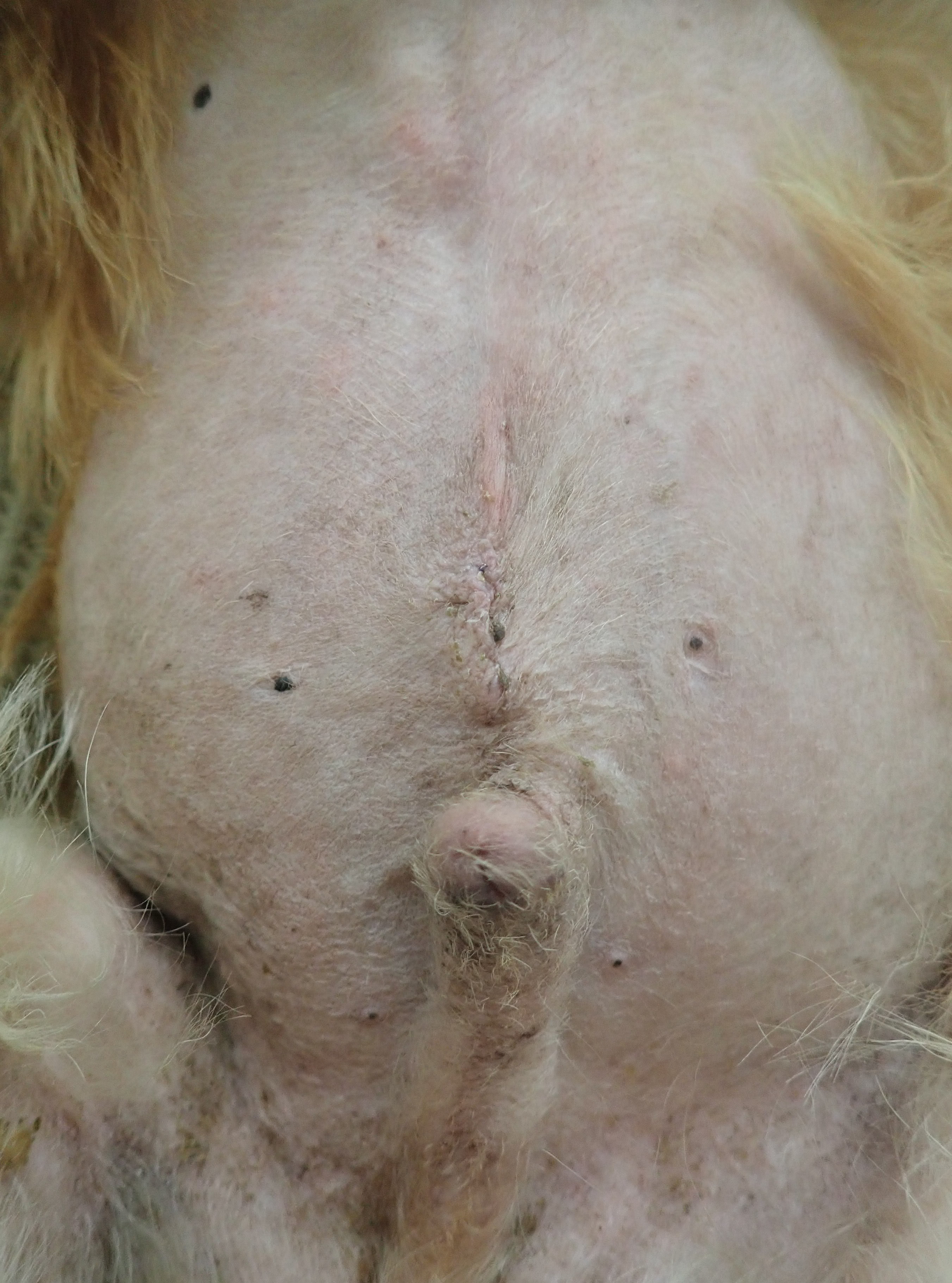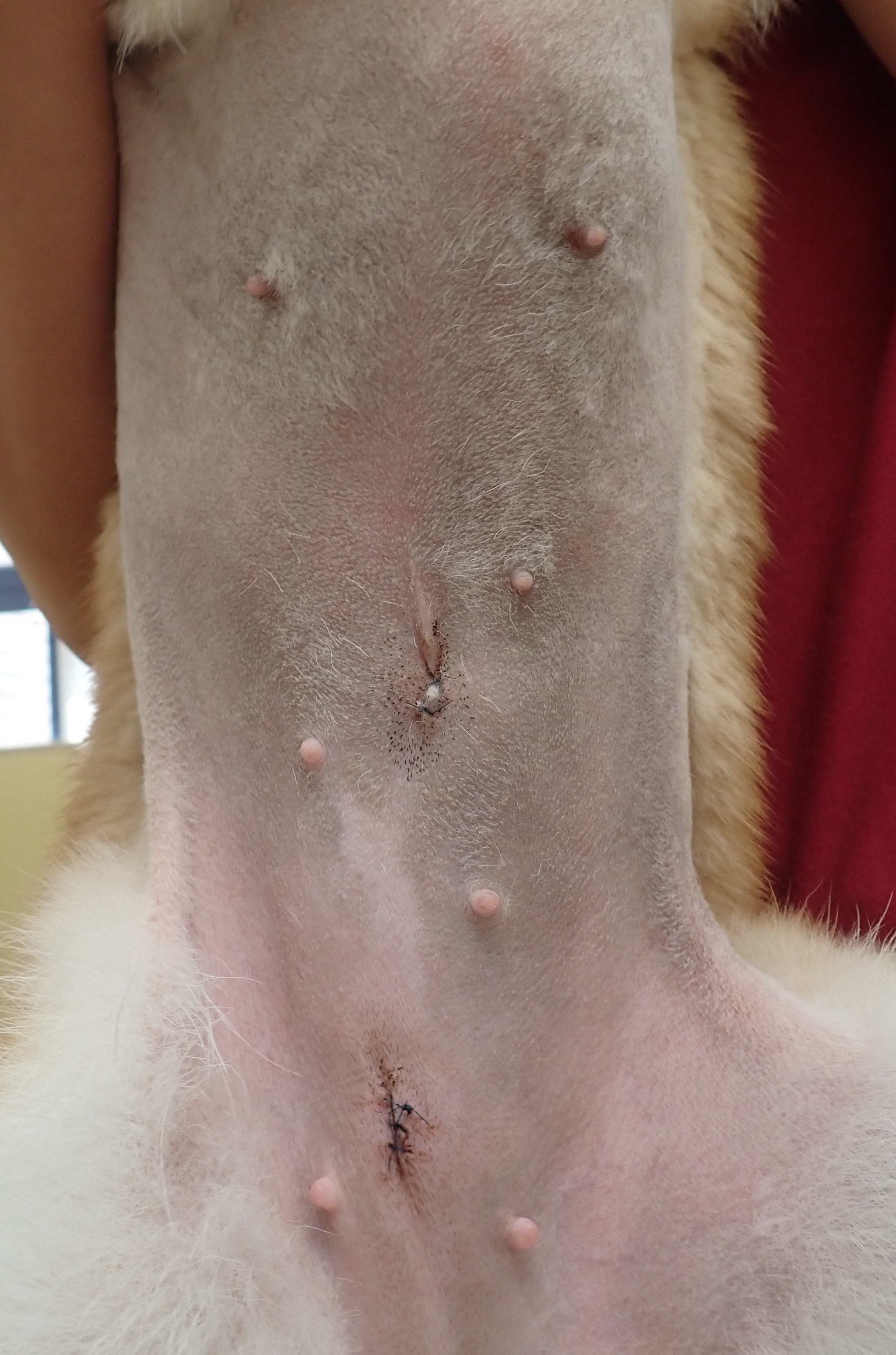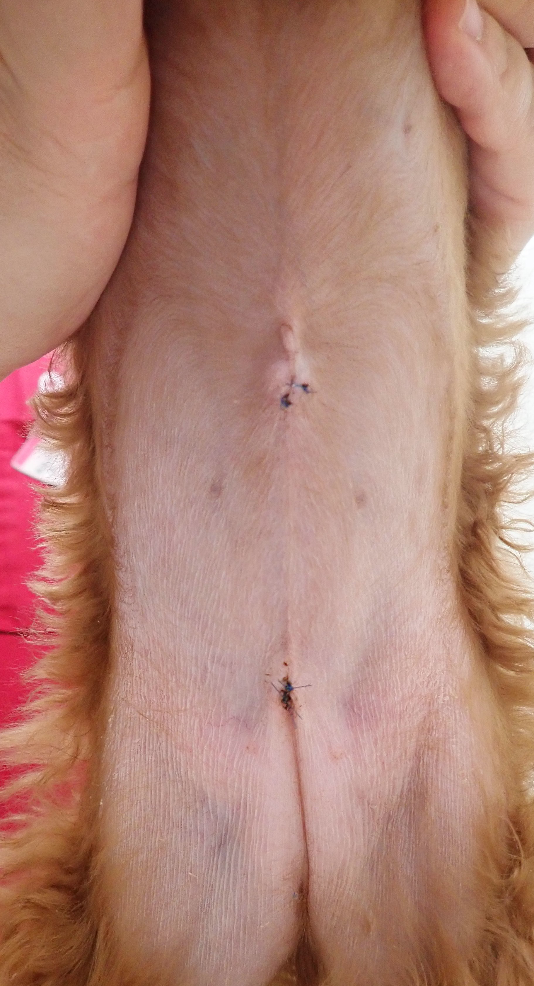 空ちゃん(ゴールデンレトリバー/7ヶ月齢)1月に行いました。5mm,5mm,5mmのポートを使用し、小さな傷で避妊手術をおこないました。