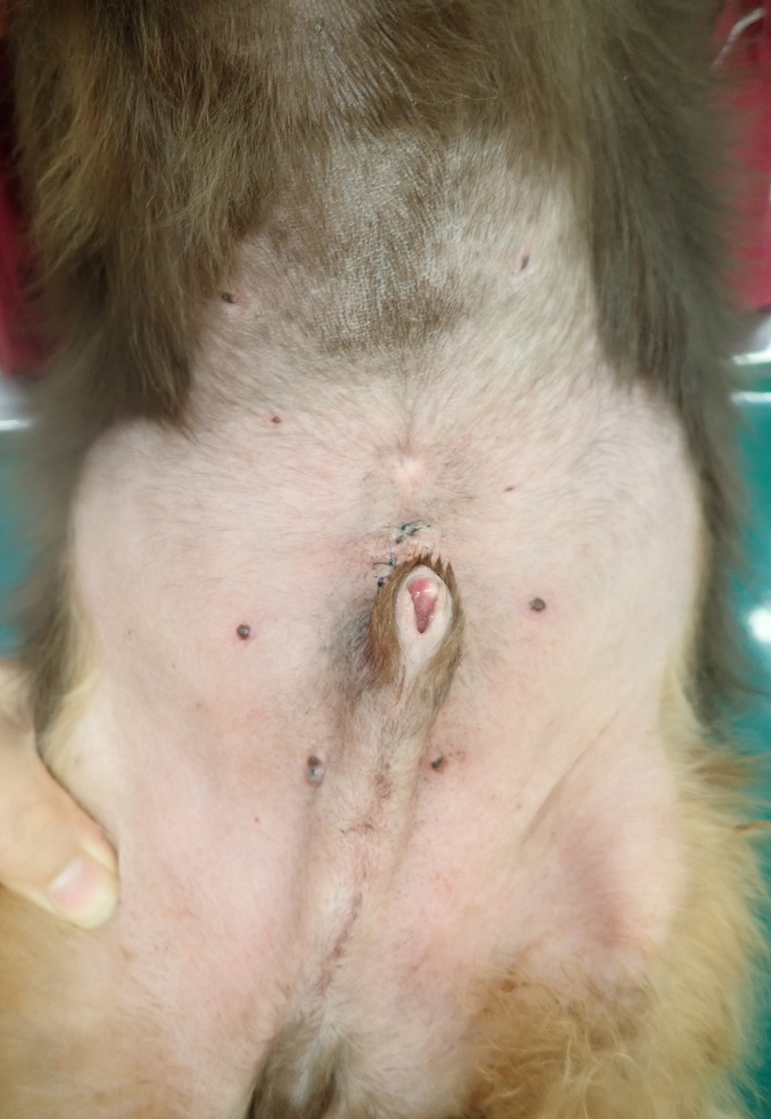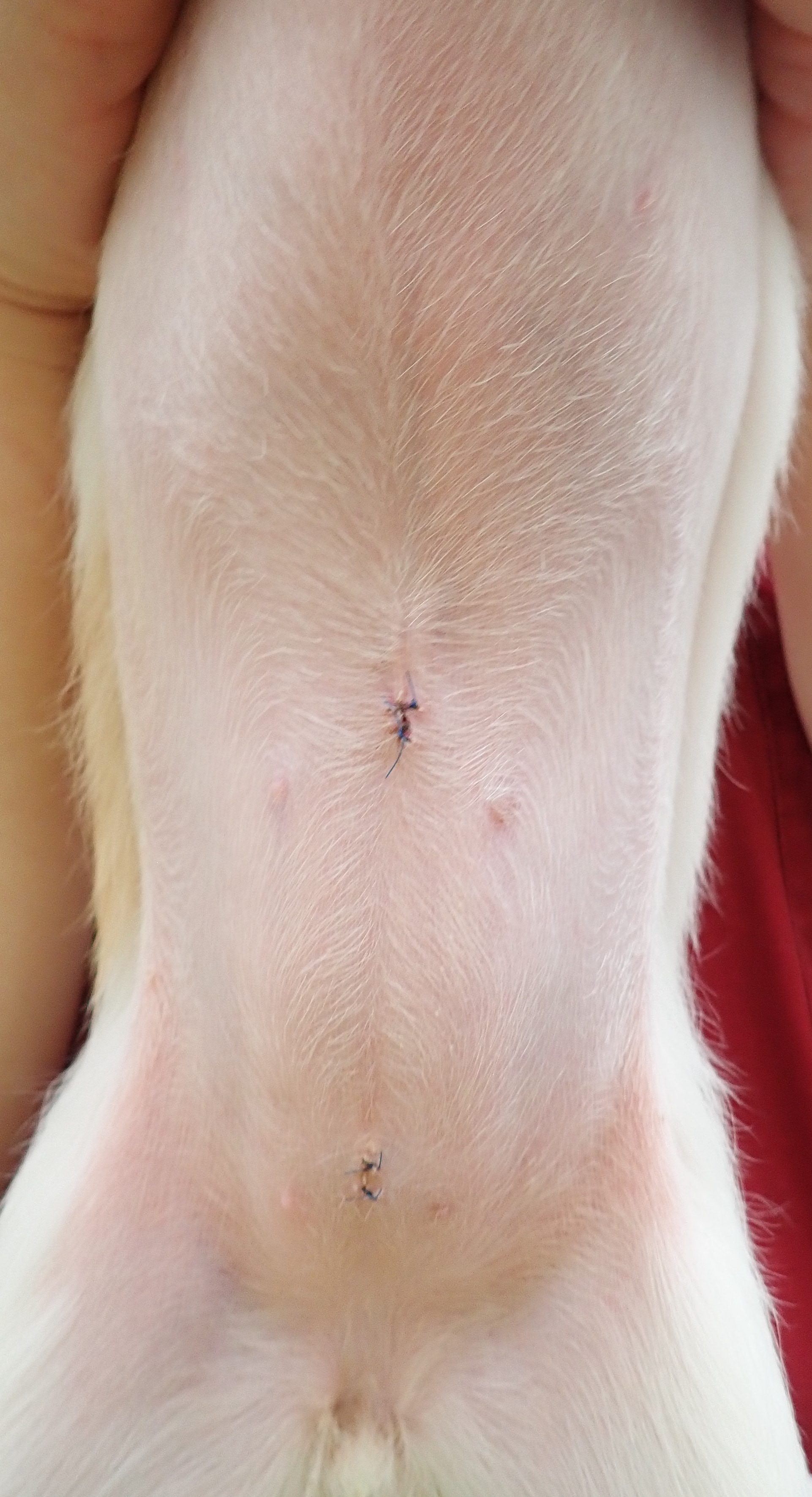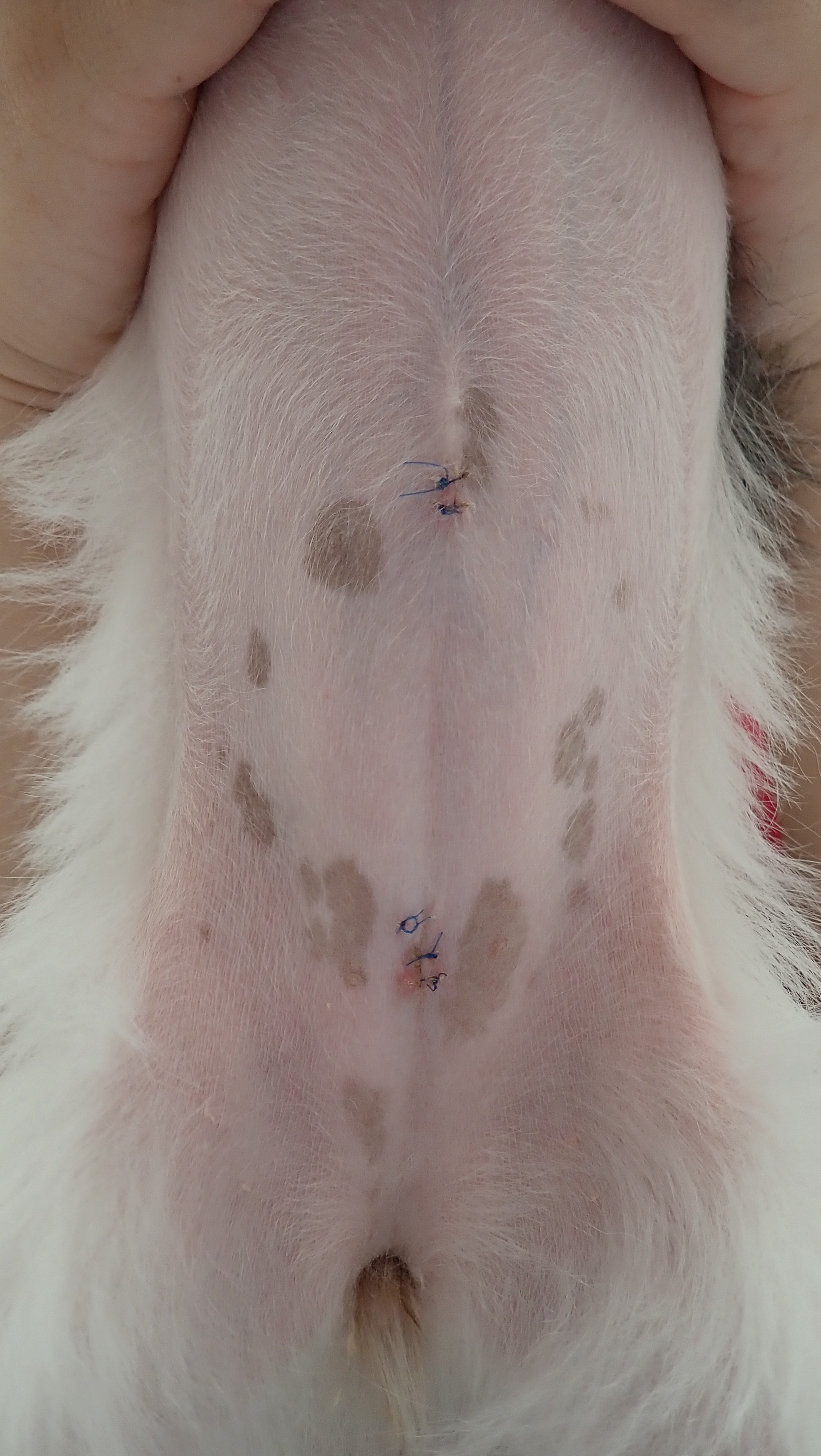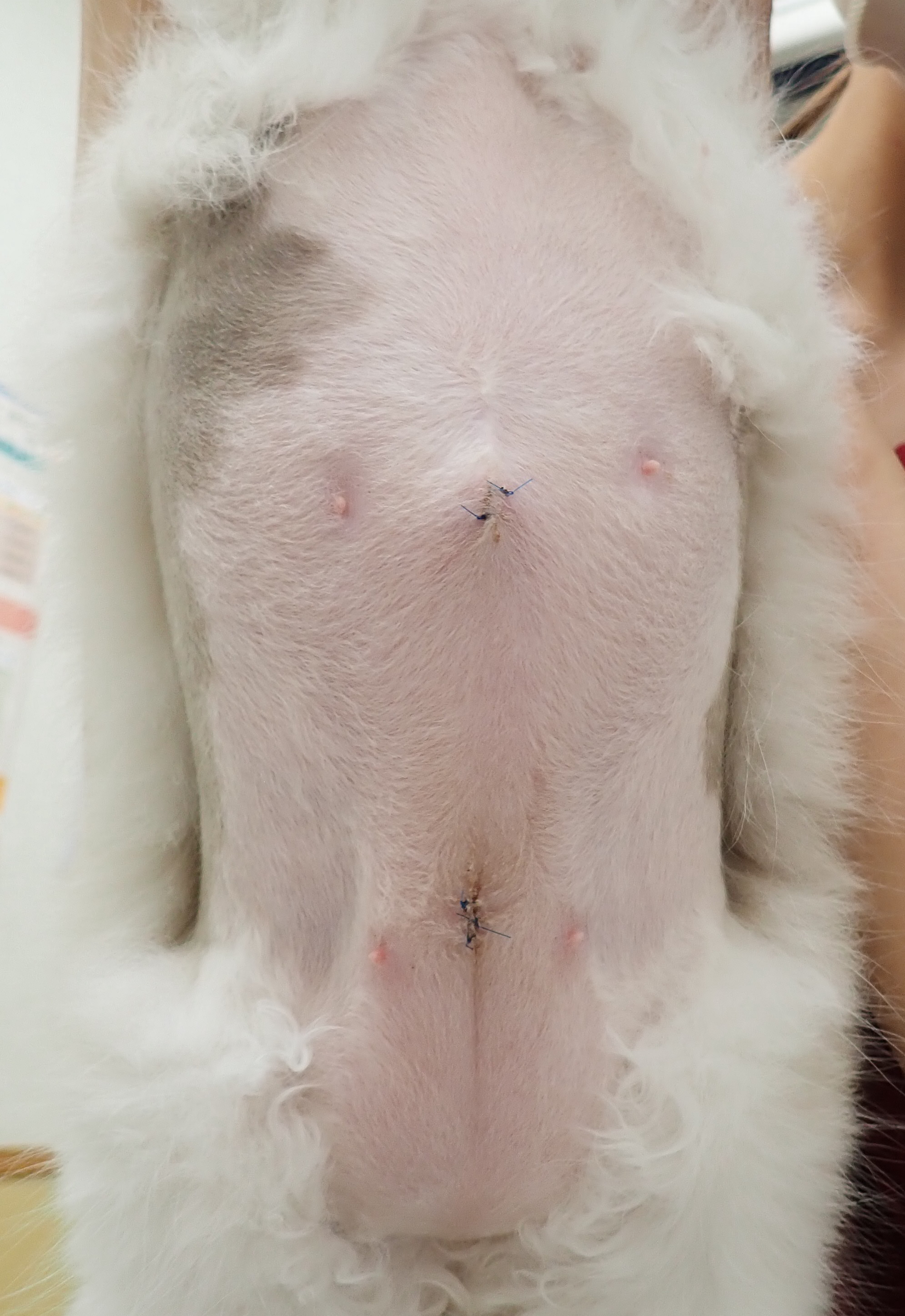 3mm,3mm,5mmのポートを使用し、小さな傷で避妊手術を行いました。