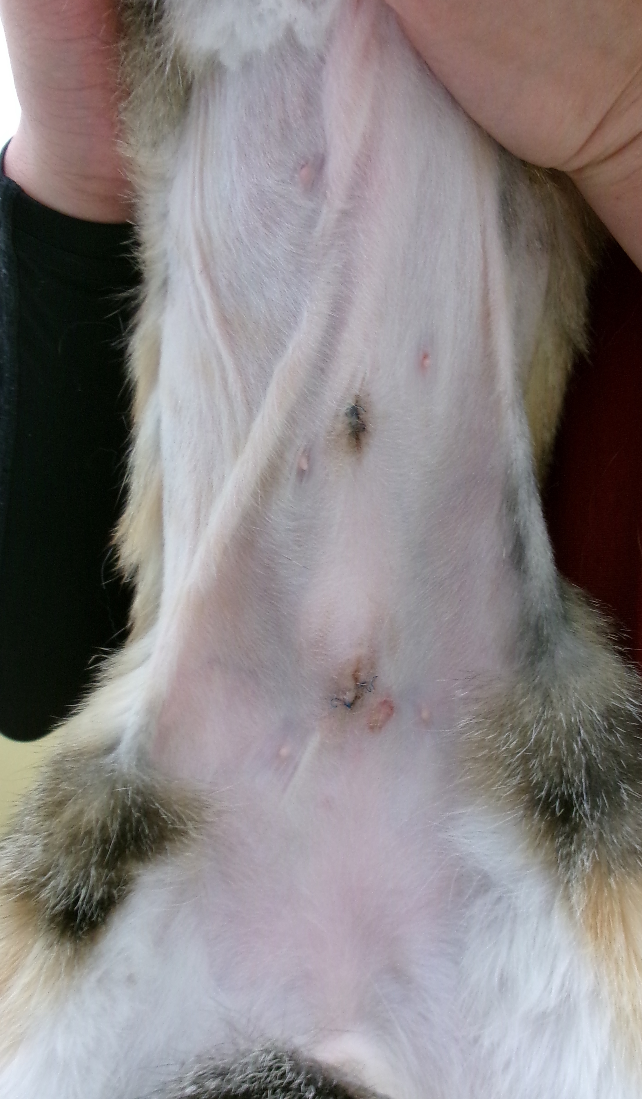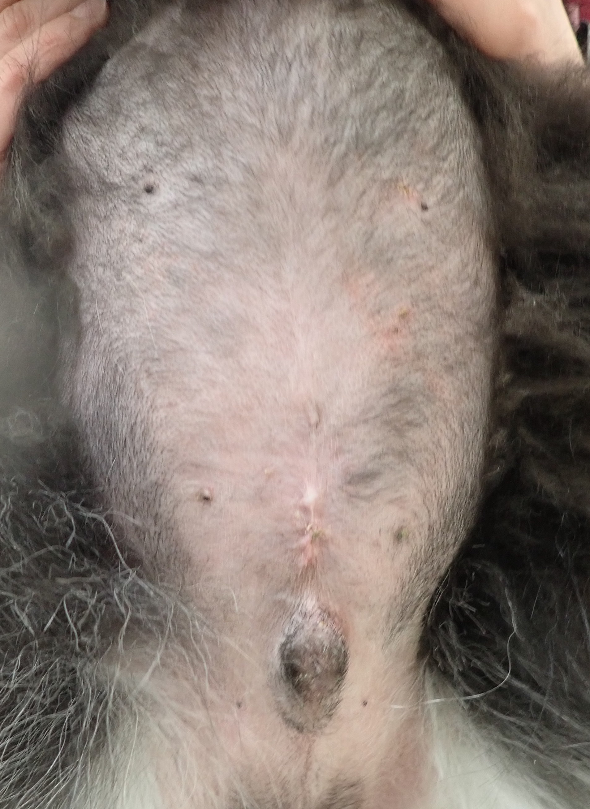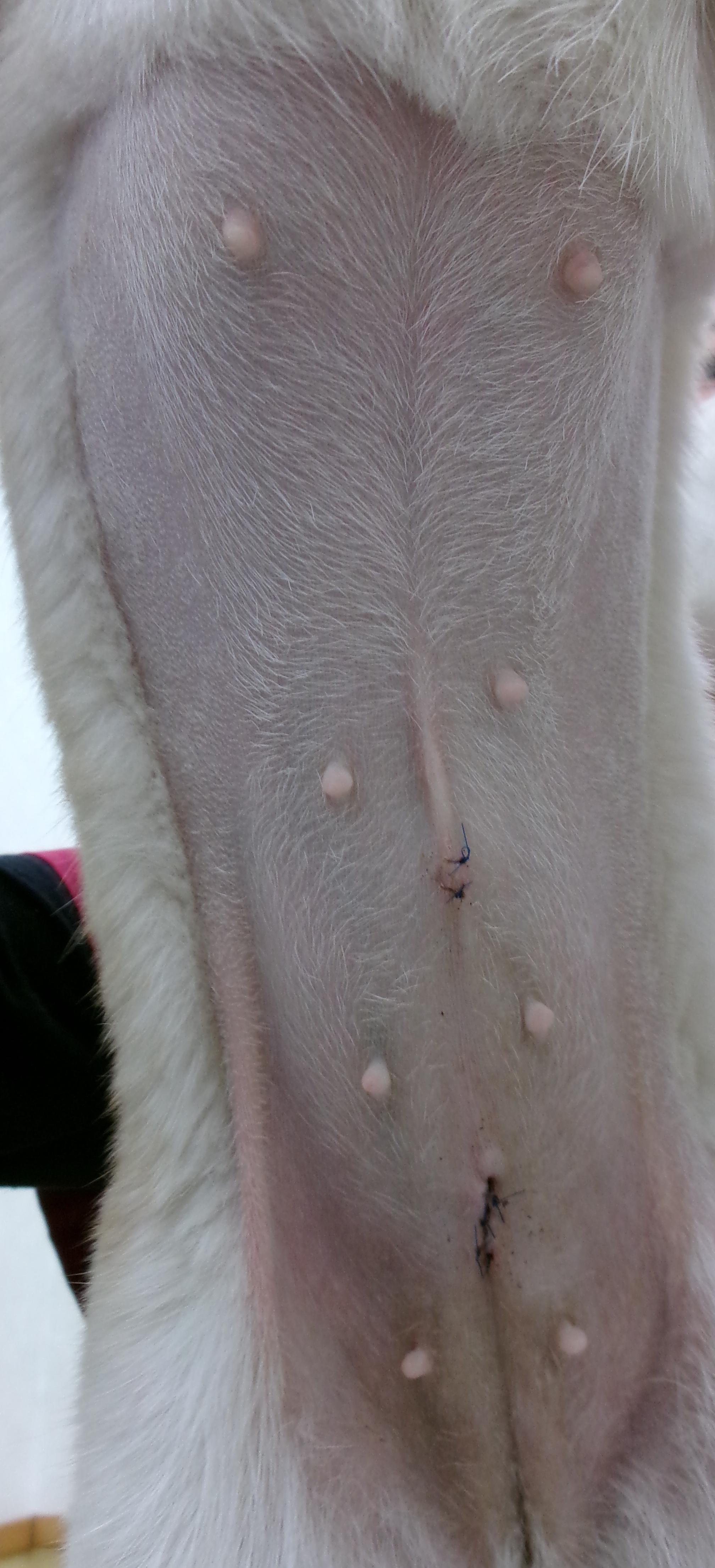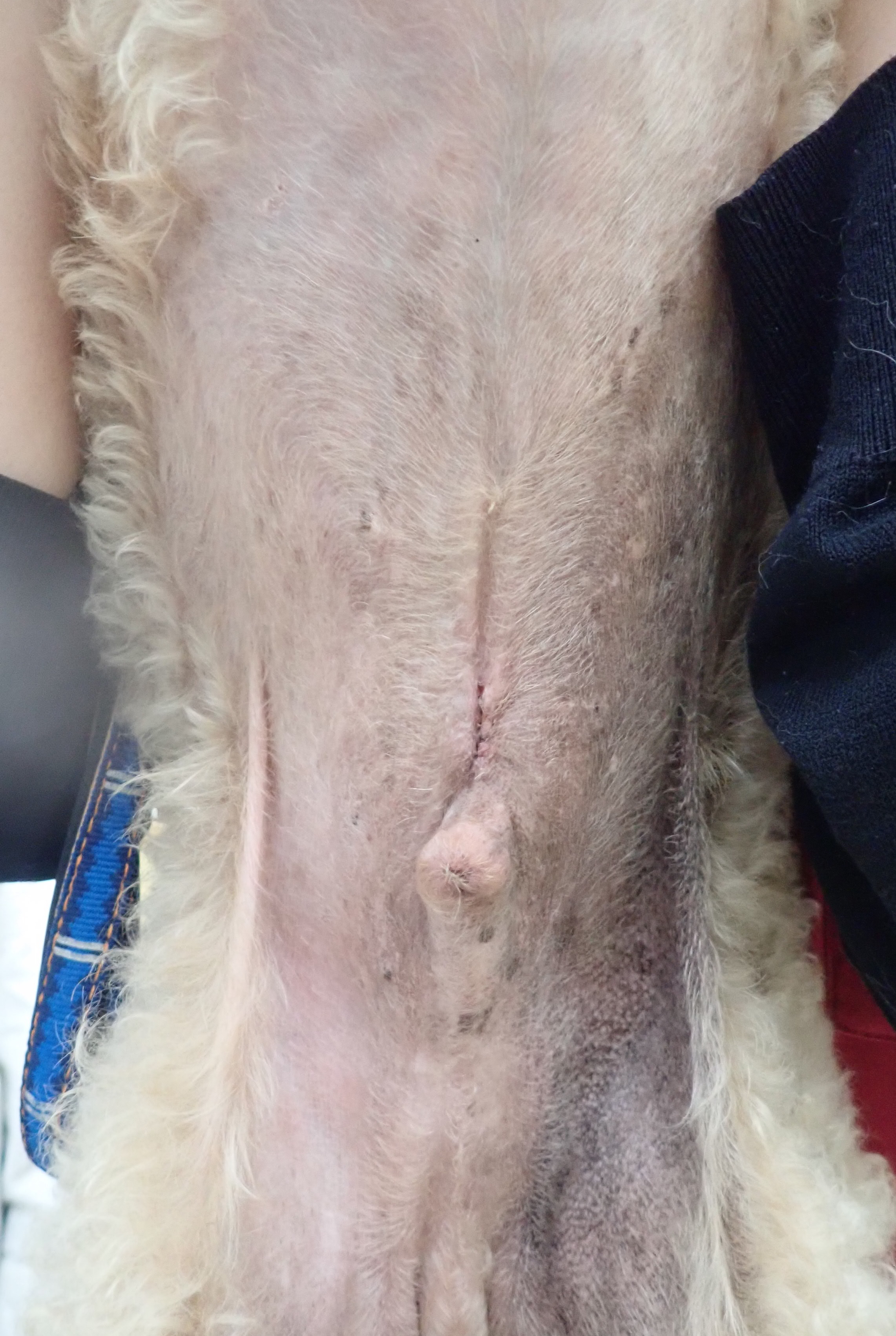 一つの拡張ポートを使用し、腹腔鏡補助下で膀胱結石の除去を行いました。